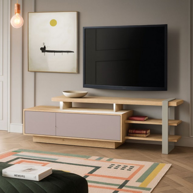 Ένα έργο τέχνης με αποθηκευτικούς χώρους, σχεδιαστικές λεπτομέρειες, που παίζουν μεταξύ τους σε ύψος, και ράφια προσφέρουν ένα μοναδικό αισθητικό αποτέλεσμα.