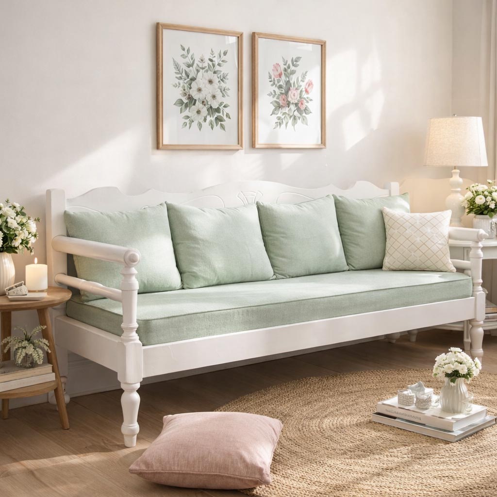 ουηδικός καναπές-κρεβάτι με αποθηκευτικό χώρο σε λευκή απόχρωση