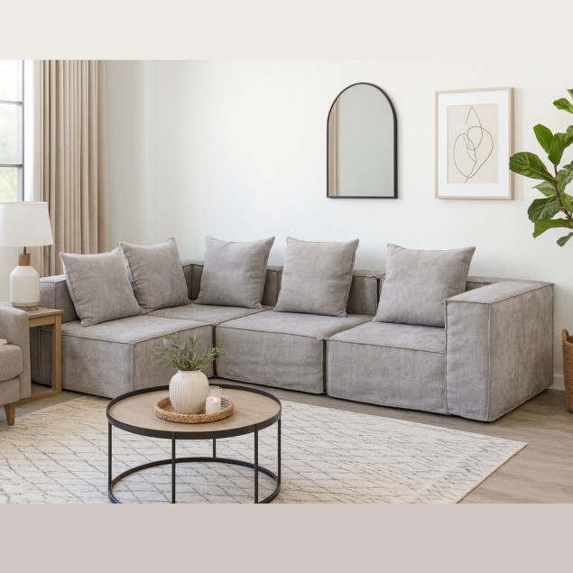 Σύστημα καναπέ αποτελούμενο από τέσσερα (4) τεμάχια, με δυνατότητα τοποθέτησης της γωνίας αριστερά ή δεξιά, εύκολα και γρήγορα, με μια απλή μετακίνηση των τεμαχίων.