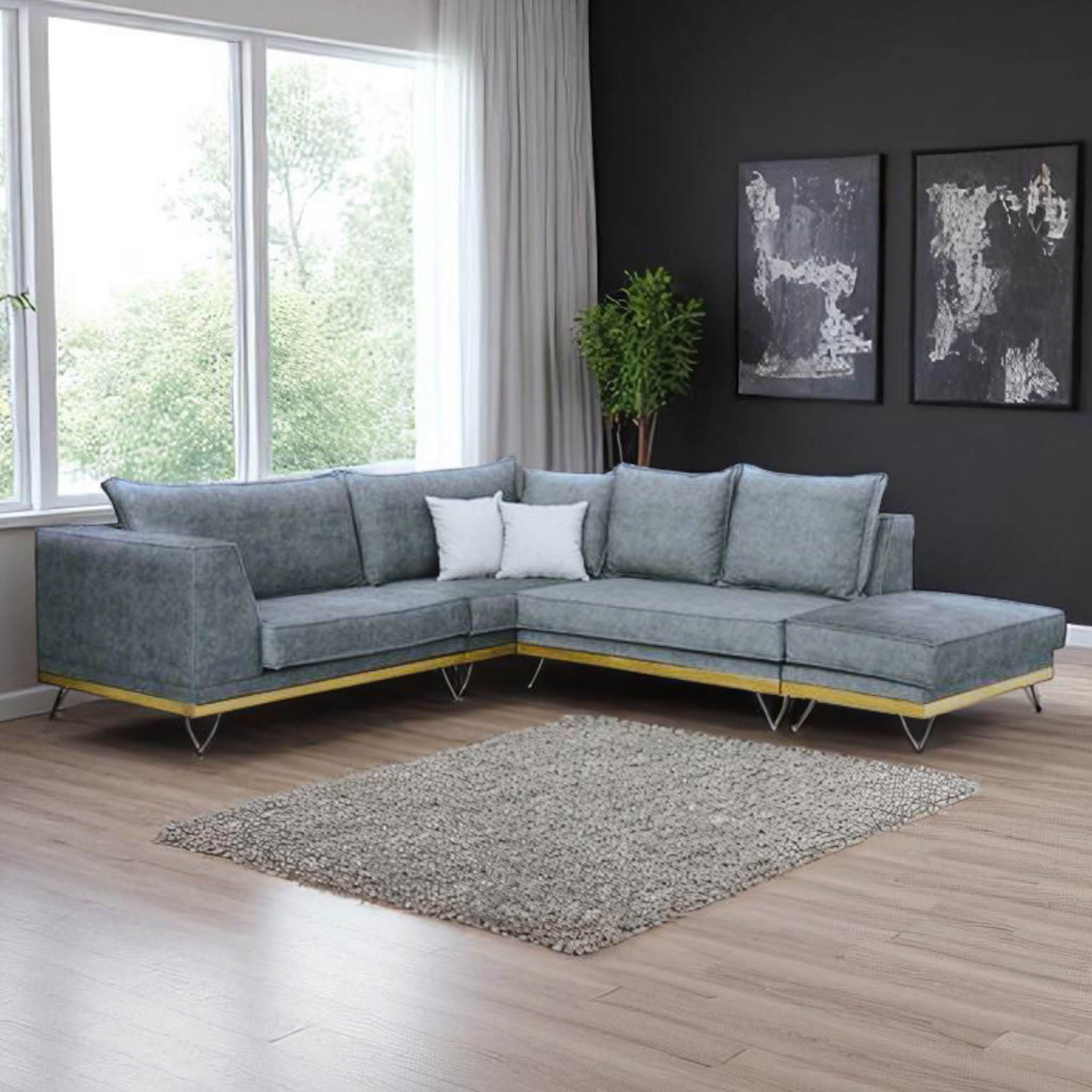 Ο καναπές αποτελείται από 4 μέρη (1 κομμάτι 140x105 με μπράτσο αριστερά, 1 κομμάτι 140x105 με μπράτσο δεξιά, 1 κομμάτι 145x105 χωρίς μπράτσο και 1 σκαμπό 60x105) ώστε να υπάρχει η δυνατότητα αλλαγής της γωνίας δεξιά - αριστερά