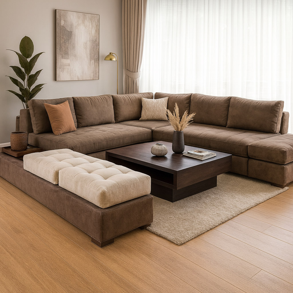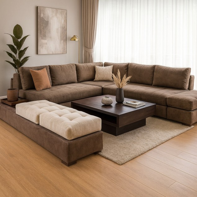 Γωνιακός καναπές σε μίνιμαλ μοντέρνο ύφος.