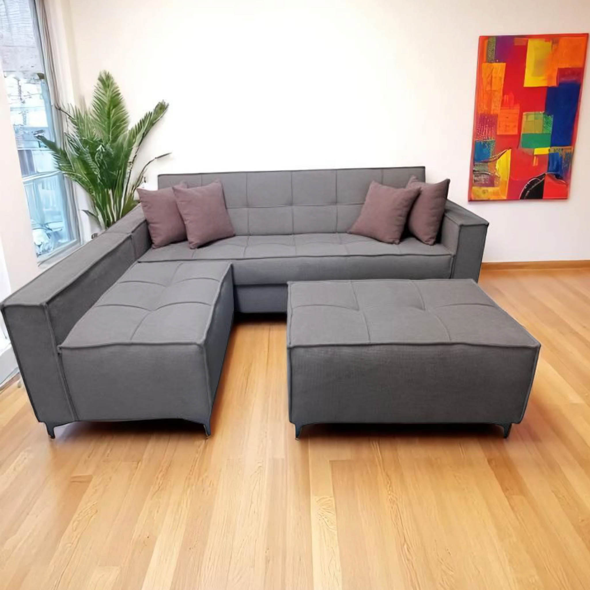 Πολυμορφικός καναπές γωνία με μηχανισμό κλικ κλακ και αποθηκευτικό χώρο με δωρο σκαμπο 90x60. Διαθέτει έξτρα ανατομικό αφρολέξ για πιο αναπαυτικό κάθισμα.