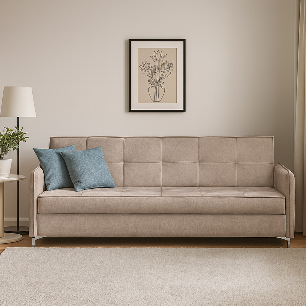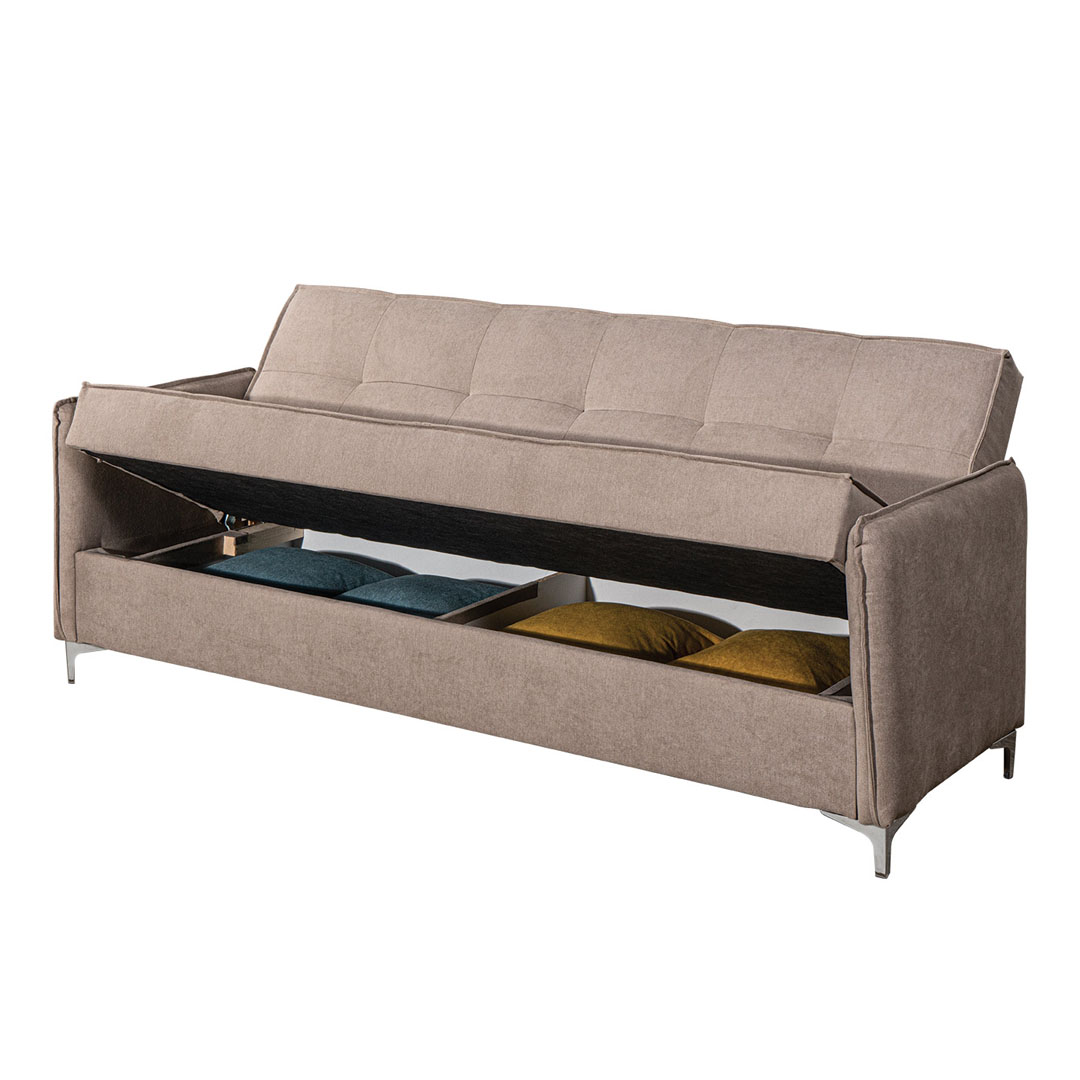 Πολυμορφικός καναπές με μηχανισμό κλικ κλακ και αποθηκευτικό χώρο. Διαθέτει έξτρα ανατομικό αφρολέξ για πιο αναπαυτικό κάθισμα ενώ τα μπράτσα σας προσφέρουν μια μοναδική αίσθηση μεσογειακού νησιού.