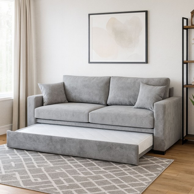 Καναπές κρεβάτι με στρώματα ενισχυμένος Ελληνικής κατασκευής σε ποικιλία χρωμάτων και υφασμάτων.