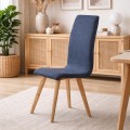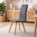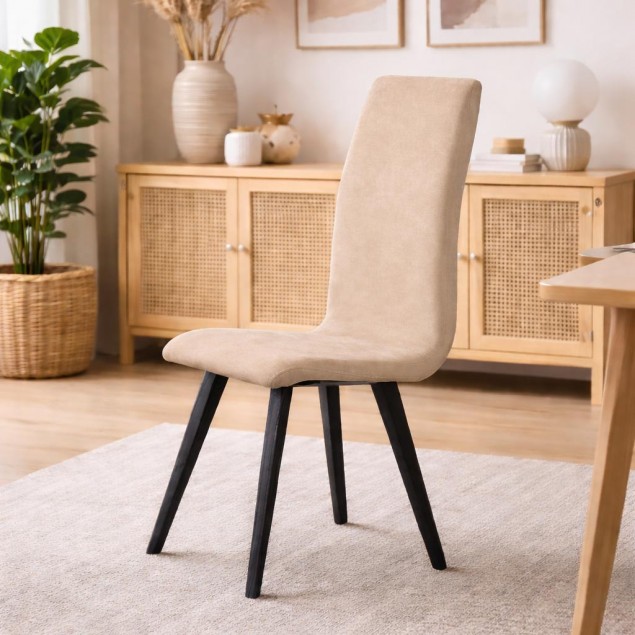Μοντέρνα και κομψή καρέκλα τραπεζαρίας που συνδυάζει άνεση και διαχρονικό design. Διαθέτει αναπαυτικό κάθισμα και ψηλή πλάτη επενδεδυμένα με ανθεκτικό υφασμάτινο ύφασμα, προσφέροντας άνετη στήριξη ακόμα και σε πολύωρη χρήση. Τα ξύλινα πόδια σε φυσική απόχρωση προσδίδουν ζεστασιά και σταθερότητα, ενώ το λιτό της στυλ την καθιστά ιδανική επιλογή για τραπεζαρίες, κουζίνες ή επαγγελματικούς χώρους.
