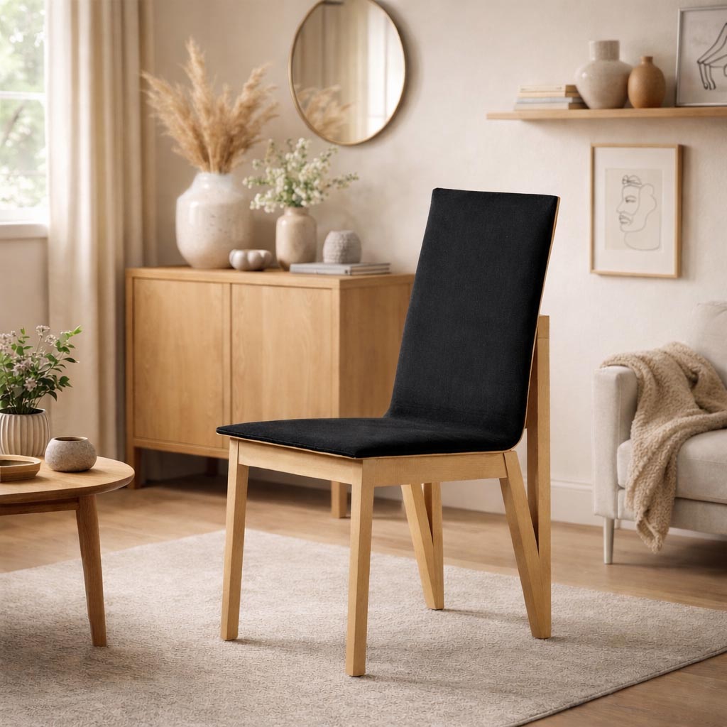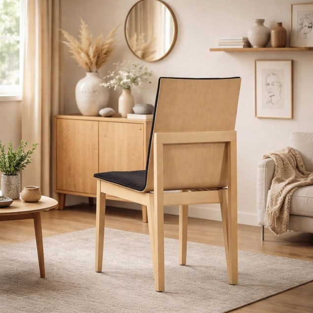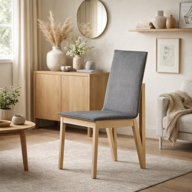 Η καρέκλα συνδυάζει σύγχρονο σχεδιασμό με φυσικά υλικά υψηλής ποιότητας. Η βάση της είναι κατασκευασμένη από μασίφ οξιά, προσφέροντας εξαιρετική αντοχή, σταθερότητα και διαχρονική αισθητική. Το κάθισμα και η πλάτη διαθέτουν άνετη επένδυση υφάσματος, που αγκαλιάζει το σώμα και εξασφαλίζει ξεκούραστη εμπειρία καθίσματος. Ιδανική επιλογή για τραπεζαρία, καθιστικό ή επαγγελματικούς χώρους, η καρέκλα αυτή δένει αρμονικά με μοντέρνα αλλά και κλασικά περιβάλλοντα.
