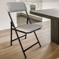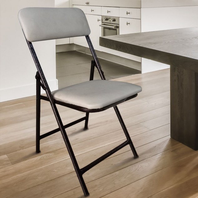 Καρέκλα κατασκευασμένη από μέταλλο εξαιρετικής ποιότητας και αντοχής στη φθορά και το χρόνο σε καφέ χρώμα με σφυρήλατο εφέ επενδυμένη με τεχνόδερμα σε λευκό χρώμα. Η καρέκλα αναδιπλώνει και κλείνει με μία κίνηση προσφέροντας έτσι ευκολία στη μεταφορά και την αποθήκευση. Ιδανική και πρακτική επιλογή που θα ανανεώσει τη διακόσμηση του χώρου σας και θα προσφέρει άνεση και χαλάρωση.