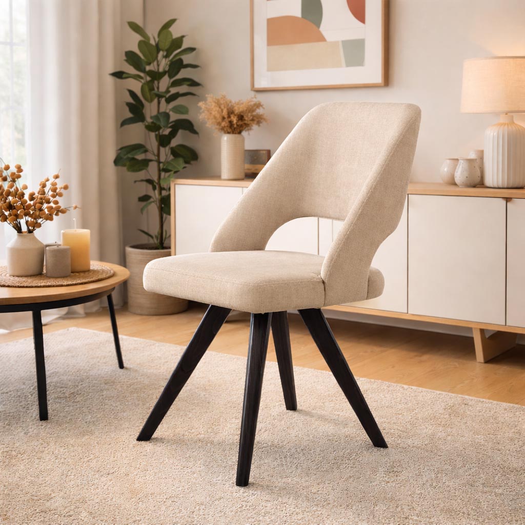 Η καρέκλα τραπεζαρίας London συνδυάζει σύγχρονο design με άνεση και διαχρονική κομψότητα. Επενδυμένη με υψηλής ποιότητας μονόχρωμο μπεζ ύφασμα, χωρίς σχέδια, προσφέρει μια καθαρή και ζεστή αισθητική που ταιριάζει απόλυτα σε κάθε σύγχρονο ή minimal χώρο.