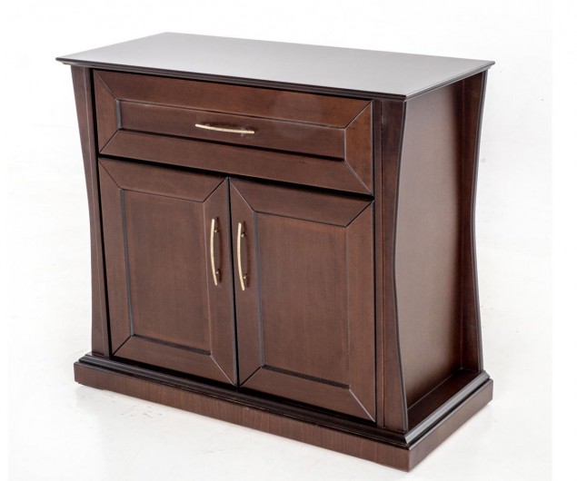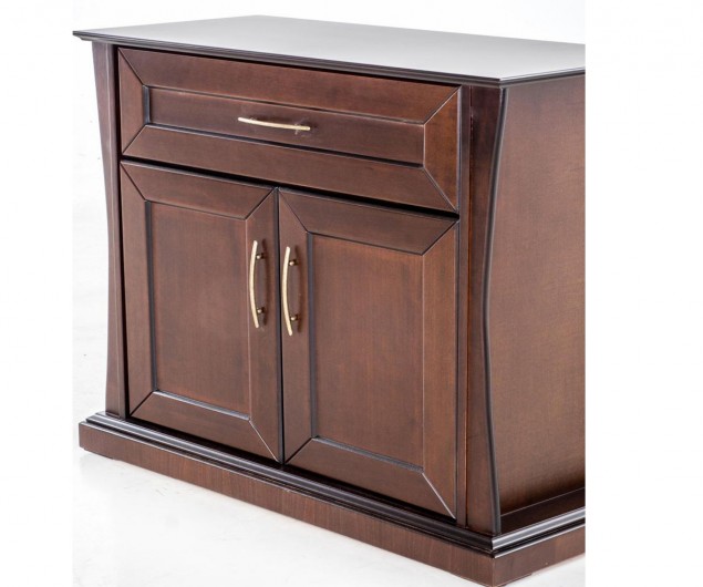 Ξύλινο, λοιπόν, έπιπλο, σε εντυπωσιακό σκούρο καρυδί χρώμα και σχεδιασμό που παραπέμπει σε κλασσική