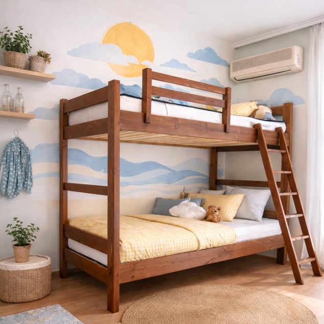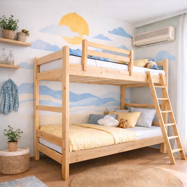 Κουκέτα κατασκευασμένη από μασίφ ξύλο πεύκου, σχεδιασμένη για να προσφέρει ανθεκτικότητα, ασφάλεια και φυσική αισθητική στο παιδικό ή νεανικό δωμάτιο. Το φυσικό ξύλο πεύκου προσδίδει ζεστασιά στον χώρο, ενώ η στιβαρή κατασκευή εξασφαλίζει μεγάλη διάρκεια ζωής και σταθερότητα.