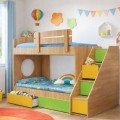 Η παιδική κουκέτα αυτή συνδυάζει δημιουργικό σχεδιασμό, ασφάλεια και υψηλή λειτουργικότητα, αποτελώντας ιδανική λύση για παιδικά δωμάτια. Κατασκευασμένη από ανθεκτικό ξύλο σε φυσική απόχρωση, προσφέρει ζεστασιά και διαχρονική αισθητική, ενώ οι χρωματιστές λεπτομέρειες στα συρτάρια και στα σκαλοπάτια προσθέτουν μια χαρούμενη και παιχνιδιάρικη νότα.