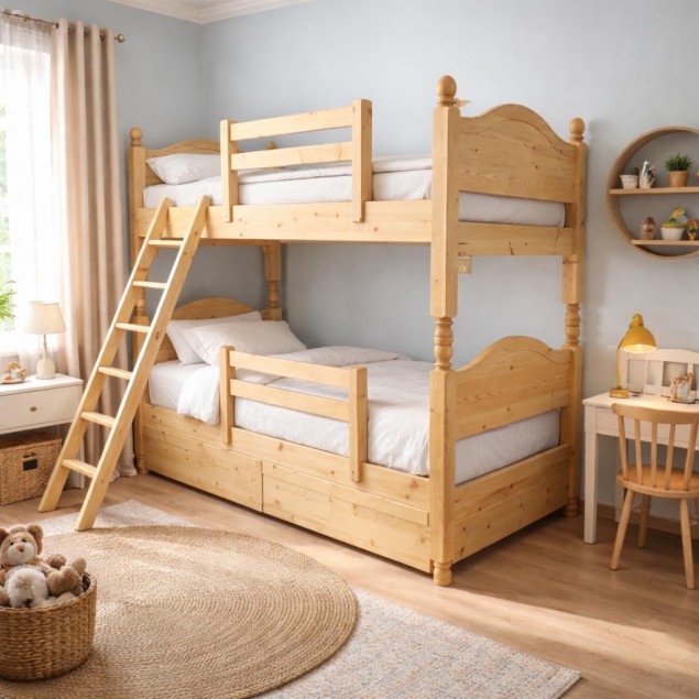 Η κουκέτα είναι ιδανική για αδέλφια ή για φιλοξενία φίλων, ενώ ο φυσικός σχεδιασμός της δημιουργεί ένα ζεστό και φιλόξενο περιβάλλον για τα παιδιά.
