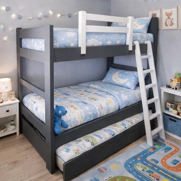 Υπάρχει η δυνατότητα προσθήκης επιπλέον κρεβατιού με συρόμενο μηχανισμό στο κάτω μέρος. Το δεύτερο κρεβάτι τραβιέται εύκολα προς τα έξω, προσφέροντας μια πρακτική λύση για φιλοξενία ή για δύο παιδιά, χωρίς να καταλαμβάνει επιπλέον χώρο όταν δεν χρησιμοποιείται.