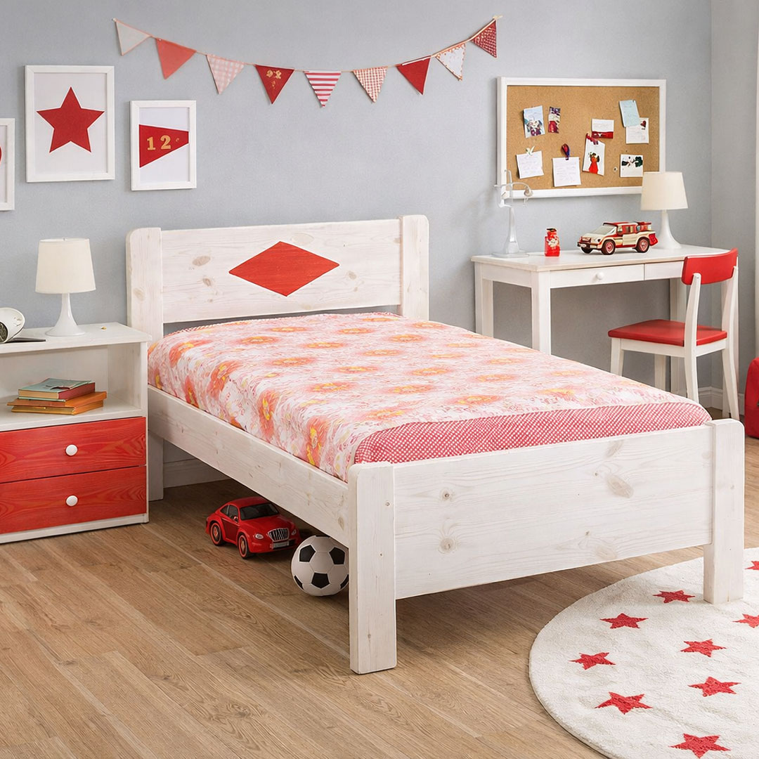 Ανακαλύψτε την ιδανική επιλογή για το παιδικό ή νεανικό δωμάτιο με αυτό το κομψό κρεβάτι από μασίφ ξύλο πεύκου. Κατασκευασμένο από φυσικό, ανθεκτικό πεύκο υψηλής ποιότητας, συνδυάζει διαχρονικό σχεδιασμό με μοντέρνες λεπτομέρειες που προσθέτουν χαρακτήρα και ζωντάνια στον χώρο.