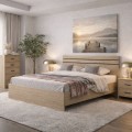 Κομψό και μοντέρνο κρεβάτι από φυσικό ξύλο, σχεδιασμένο για να προσφέρει άνεση και αισθητική αρμονία στον χώρο της κρεβατοκάμαρας.