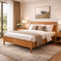 Αναβαθμίστε την αισθητική του υπνοδωματίου σας με αυτό το κομψό ξύλινο κρεβάτι, που συνδυάζει minimal σχεδιασμό και φυσική ζεστασιά. Κατασκευασμένο από υψηλής ποιότητας μασίφ ξύλο οι κολόνες και το κεφαλάρι μαζι με τα πλαινα σε δρυς mdf, το κρεβάτι προσφέρει ανθεκτικότητα και σταθερότητα, ενώ η καθαρή γραμμή του το καθιστά ιδανικό για μοντέρνους αλλά και κλασικούς χώρους.