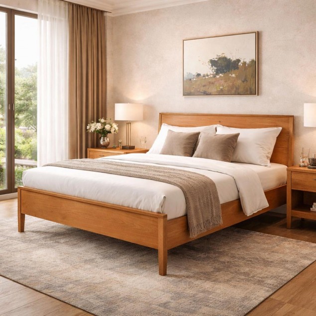 Το λιτό κεφαλάρι με ευθείες γραμμές δημιουργεί μια ήρεμη και χαλαρωτική ατμόσφαιρα, ιδανική για ξενοδοχειακή αισθητική. Η φυσική απόχρωση του ξύλου προσθέτει ζεστασιά στον χώρο, ενώ ταιριάζει εύκολα με διάφορα στυλ διακόσμησης.