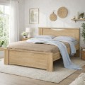 Πρόκειται για ένα κομψό ξύλινο κρεβάτι με φωτεινή, φυσική απόχρωση που αποπνέει ζεστασιά και ηρεμία. Ο σχεδιασμός του είναι λιτός και διαχρονικός, με καθαρές γραμμές και διακριτικές καμπύλες στο κεφαλάρι και στο ποδαρικό, που προσθέτουν μια απαλή, κομψή λεπτομέρεια χωρίς να βαραίνουν την αισθητική.