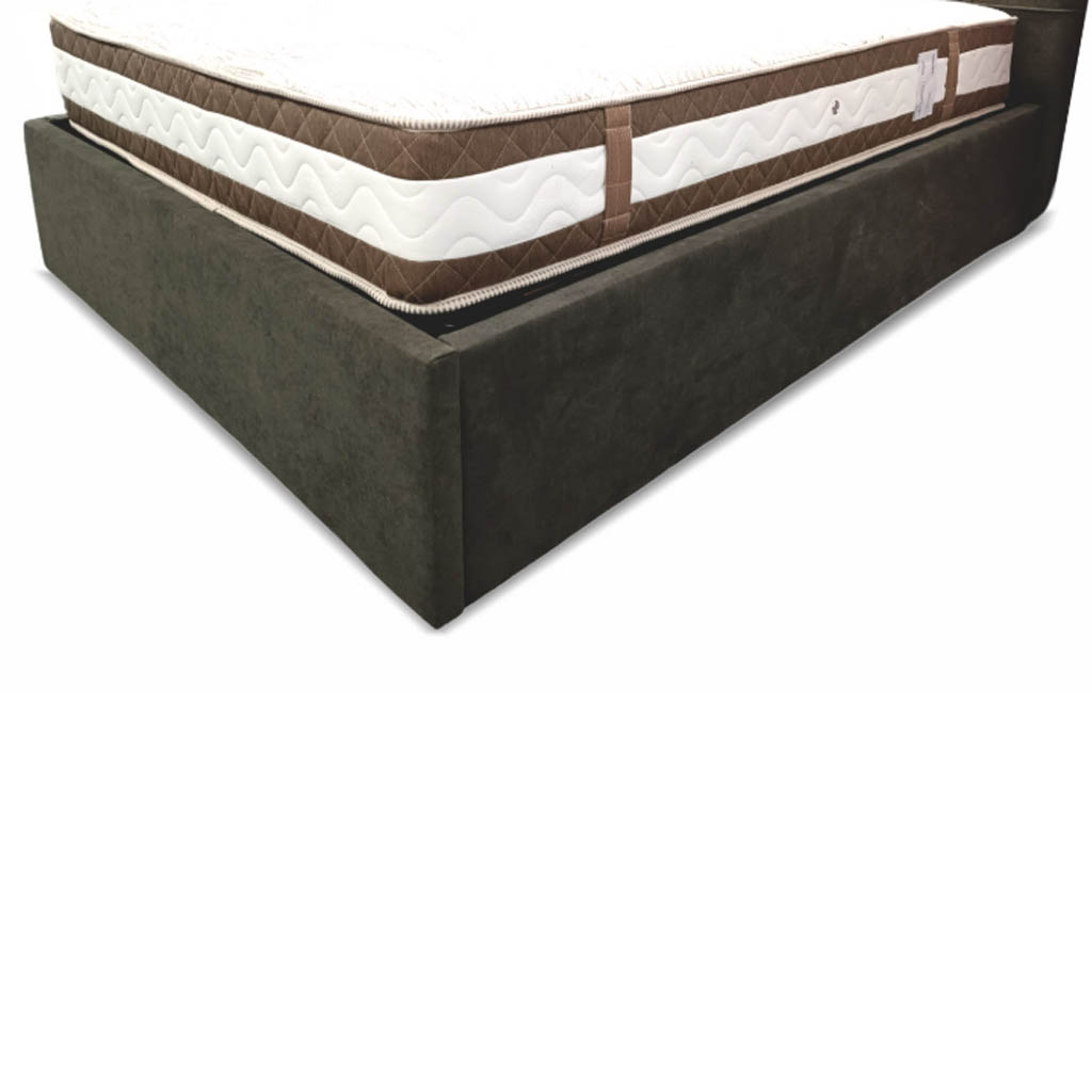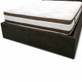 Πρόκειται για ένα κομψό, υφασμάτινο κρεβάτι με σύγχρονη αισθητική και ζεστό, φυσικό χαρακτήρα. Διαθέτει ψηλό, μαλακά επενδυμένο κεφαλάρι με κάθετες ραφές, που προσφέρει άνεση και αίσθηση πολυτέλειας. Η βάση του είναι ντυμένη με το ίδιο ύφασμα, με διακριτικές καμπύλες και χαμηλά, στιβαρά πόδια που ενισχύουν τη σταθερότητα.