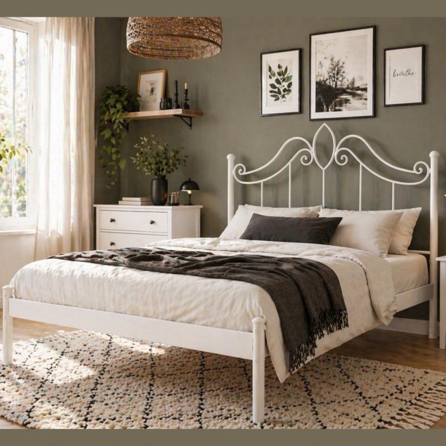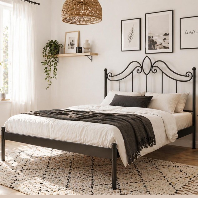 Αναβαθμίστε την κρεβατοκάμαρά σας με αυτό το κομψό μεταλλικό κρεβάτι, που συνδυάζει διαχρονικό design και μοντέρνα λιτότητα. Η μαύρη μεταλλική κατασκευή με καμπύλες λεπτομέρειες στο κεφαλάρι προσδίδει ρομαντική και ταυτόχρονα industrial αισθητική, ιδανική για κάθε σύγχρονο χώρο.