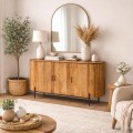 Διαθέτει ευρύχωρα ντουλάπια για αποθήκευση και στιβαρή κατασκευή που εξασφαλίζει μακροχρόνια χρήση. Ιδανικός για σαλόνι, τραπεζαρία ή καθιστικό, ταιριάζει άψογα σε μοντέρνα, boho ή φυσικά διακοσμημένα περιβάλλοντα.