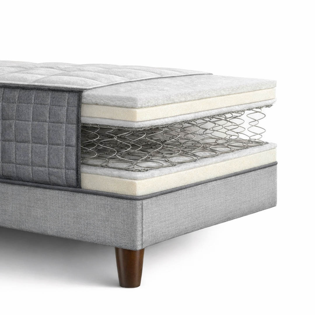 Η περιμετρική ενίσχυση με ατσάλινο λαμάκι προσφέρει αυξημένη στήριξη στις άκρες του στρώματος, αποτρέποντας παραμορφώσεις και διατηρώντας το σχήμα του για χρόνια. Έτσι, το στρώμα παραμένει άνετο και λειτουργικό ακόμα και μετά από μακροχρόνια χρήση.