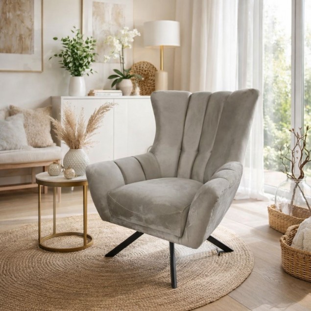Μοντέρνα πολυθρόνα με καπιτονέ πλάτη . Με περιστρεφόμενη μεταλλική βάση.