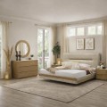 Σετ κρεβατοκάμαρας από φυσικό ξύλο δρυς. Οι στρογγυλεμένες γραμμές με την χρήση της τελευταίας τεχνολογίας γραμμή παραγωγής μας, το ντυμένο κεφαλάρι και οι κατασκευαστικές λεπτομέρειες, συνθέτουν μια υψηλής αισθητικής κρεβατοκάμαρα για κάθε σύγχρονη κατοικία. Ενώ ταυτόχρονα οι ζεστοί χρωματισμοί του ξύλου, προσδίδουν ένα cozy και πολυτελή χαρακτήρα στο υπνοδωμάτιο.