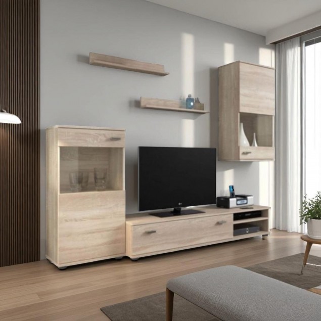 – Βάση τηλεόρασης με ένα ευρύχωρο ανακλινόμενο ντουλάπι και 2 ράφια.