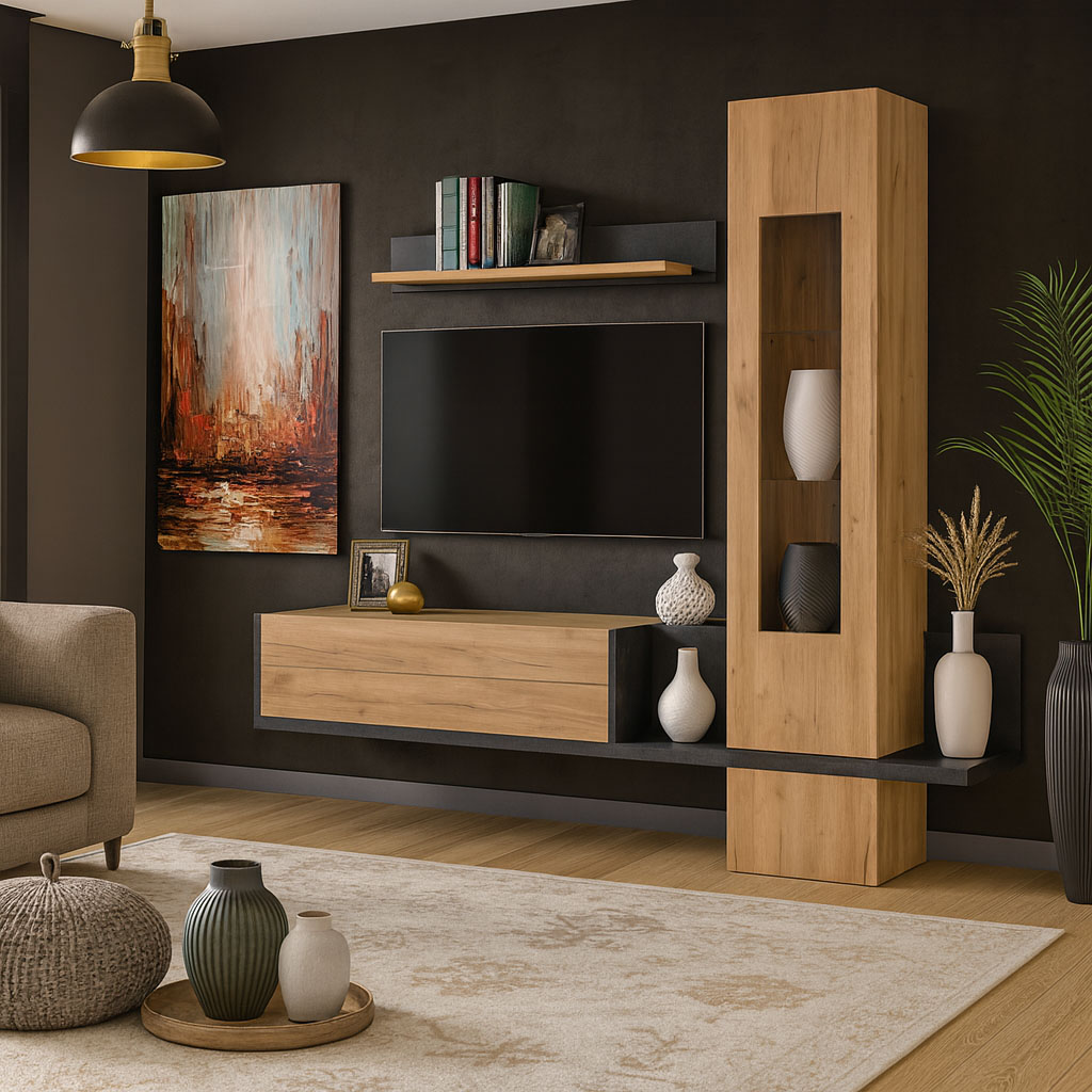 Ένα έργο τέχνης με αποθηκευτικούς χώρους, σχεδιαστικές λεπτομέρειες, που παίζουν μεταξύ τους σε ύψος, και ράφια προσφέρουν ένα μοναδικό αισθητικό αποτέλεσμα.