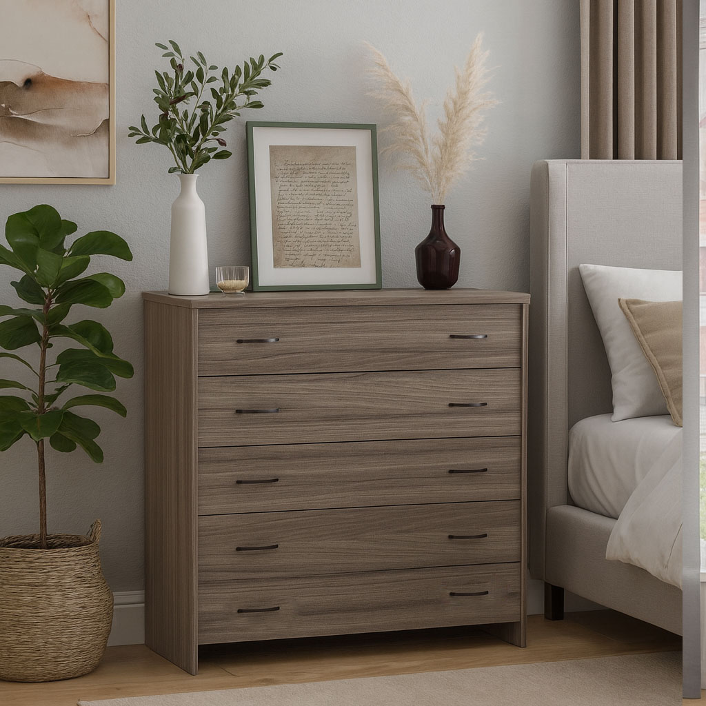 Σιφινιέρα με 5 συρτάρια, από μελαμίνη 18mm, Ελληνικής κατασκευής, σε μεγάλη ποικιλία χρωμάτων. Συρτάρια με μεταλλικούς δρόμους και χοντρή πλάτη.