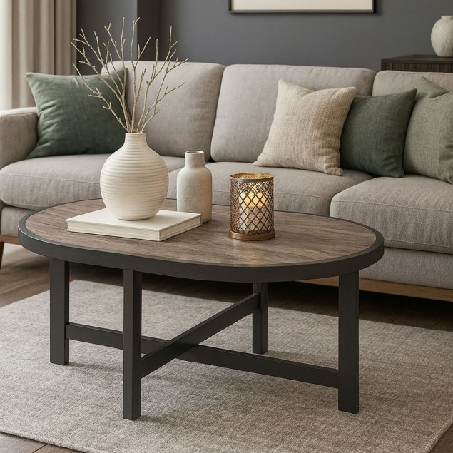 Μπορεί να εναρμονιστεί σε σαλόνια με μοντέρνα, industrial αλλά και vintage αισθητική, χάρη στον σύγχρονο και δυναμικό σχεδιασμό του. Διαθέτει στιβαρή μεταλλική βάση στήριξης και φέρει οβάλ επιφάνεια από μελαμίνη σε υπέροχο φυσικό χρώμα ξύλου.