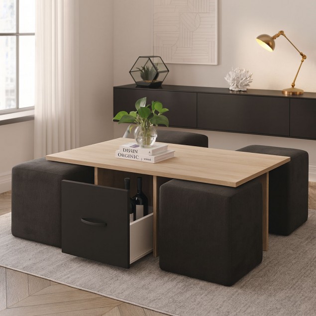 Τραπεζάκι σαλονιού κατάλληλο για τοποθέτηση μπροστά από καναπέ. Είναι ορθογώνιο και αποτελείται από μελαμίνη . Ανθεκτικό στα γρατζουνίσματα, στην τριβή και στα διαβρωτικά.