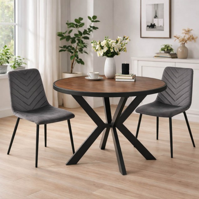 Τα πόδια της τραπεζαρίας ροτόντα είναι μεταλλικά, έχουν σχήμα "Χ" και προσφέρουν μια ισχυρή και κομψή βάση στην τραπεζαρία. Είναι ένα σημαντικό στοιχείο του σχεδιασμού της και συμβάλλουν στην συνολική της αισθητική και λειτουργικότητα.
