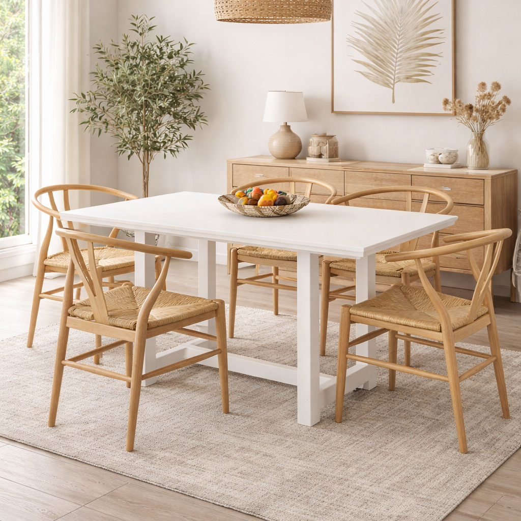 Συνδυάζεται άψογα με καρέκλες από φυσικό ξύλο ή ψάθα, δημιουργώντας έναν ζεστό και φιλόξενο χώρο τραπεζαρίας.