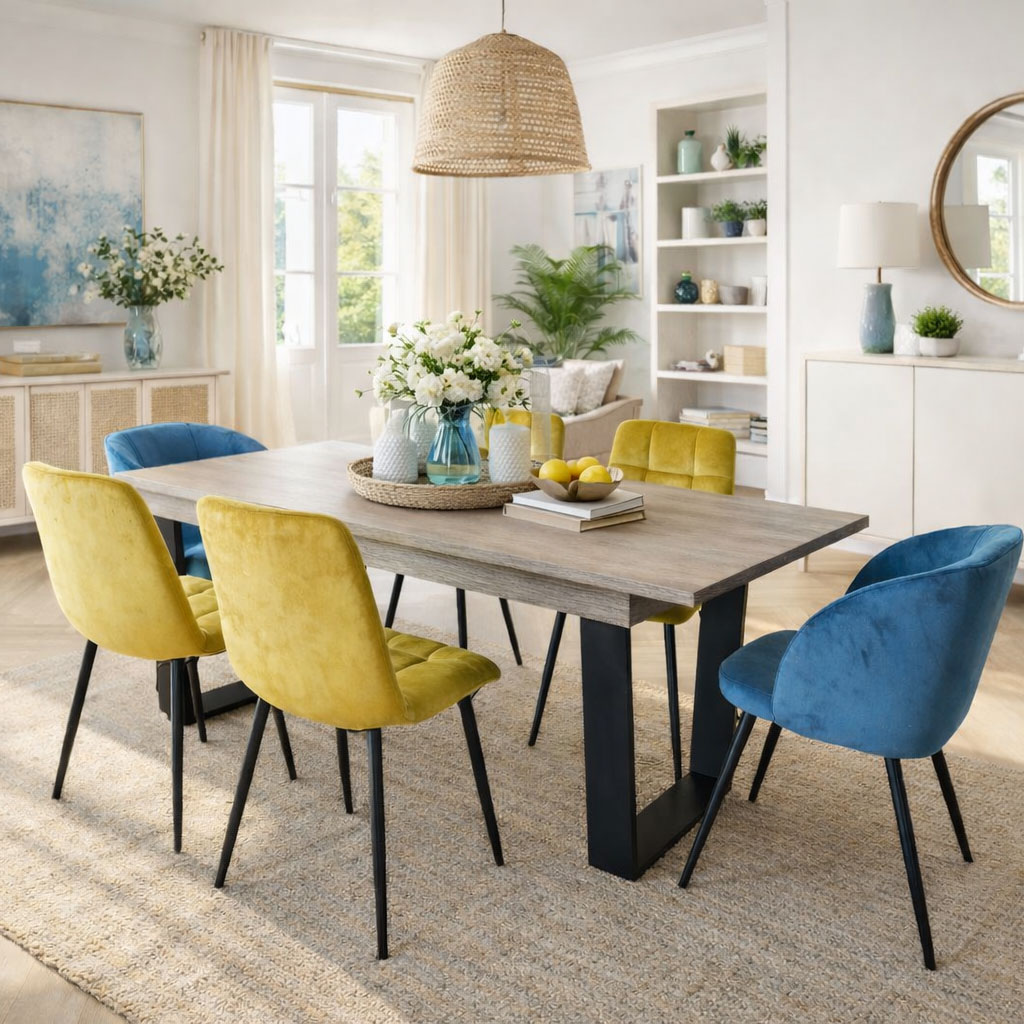 Τραπέζι της εταιρείας Δελχάς Homestore ιδανικό για να δημιουργήσετε το σετ τραπεζαρίας που επιθυμείτε και θα ταιριάξει στο σαλόνι σας. Έχει επιφάνεια από μοριοσανίδα (νοβοπάν) με επένδυση μελαμίνης και μεταλλικό σκελετό για καλύτερη σταθερότητα. Η μοριοσανίδα είναι ένα παράγωγο ξύλου από μικρά κομμάτια ξύλου και πριονίδι, ενώ με την επένδυση της μελαμίνης, αποκτά ανθεκτικότητα στα γρατζουνίσματα, στην τριβή και στα διαβρωτικά. Είναι επεκτεινόμενο, δίνοντας τη δυνατότητα δημιουργίας πρόσθετου χώρου φιλοξενίας επιπλέον ατόμων.