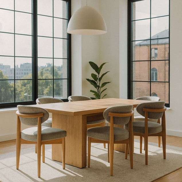 Η φυσική απόχρωση του δρυ συνδυάζεται αρμονικά με γήινες ή ουδέτερες αποχρώσεις στον χώρο, καθιστώντας το τραπέζι ιδανικό για κάθε minimal ή σκανδιναβικό περιβάλλον.
