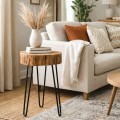 Βοηθητικό τραπέζι σαλονιού μασίφ ξύλο χρώμα καρυδί-πόδι μέταλλο μαύρο 32x30x47εκ